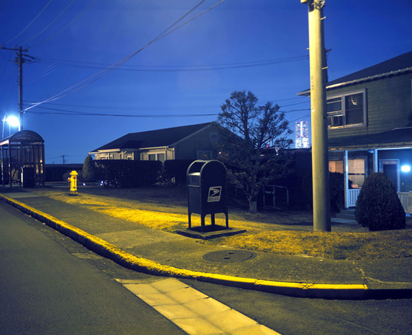There’s a lot happening in Vancouver, British Columbia right now, if you hadn’t noticed. Of course, I’m talking about art. Currently on view at Monte Clark Gallery is a solo show of new work by Vancouver-born Greg Girard. The exhibition, entitled Half the Surface of the World, presents photographs taken by Girard on his visits to more than twenty US military bases across the massive area of the world known to the Pentagon as “PACOM.” PACOM is the largest of six “territorial constructs that exist solely on the Pentagon’s map of the world,” according to the exhibition’s materials, which go on to explain that “The US military influence in this region is mainly anchored with bases in Japan, Korea and Guam.” Girard, who has been living in Asia since 1983, reveals through his work how reminiscent these bases—which are home to family members as well as soldiers—are to typical Middle-American suburbs. One imagines that if you were drugged and dropped into a few of these scenes, you would be none the wiser that you were half way around the world from the birthplace of hamburgers and milkshakes. While the images are eerie, the sentiment might be the exact opposite for those who live in these locations for any length of time, as they find themselves surrounded by the consolation of “home.” However, void of any human interaction within the shots, they appear distant and industrial as they glow with the deeply saturated colors of street lamps at twilight. I’m reminded of the work of Richard Ross, both aesthetically and thematically. In a certain way they remind me most of his Waiting for the End of the World series of bomb shelters.