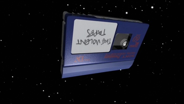 This tongue-in-cheek narration intensifies in Gander’s Best work EVER EVER EVER EVER EVER—a 16mm film projection of a sequence of a mini DV tape floating through space. Over the visual homage to the 1989 flying toaster screensaver, the narrator earnestly discusses the piece, saying at one point, “This particular work has been a challenge to make, a work that talks about the notion of cliché without simply remaining one. And I’m still unsure whether I’ve succeeded. A video tape floating through space is, of course, a cliché.” Both pieces provide a humorous—and eerily unsettling at times—juxtaposition between this trusted voice and visual of academia and science, against the humanized and self-doubting interjections of the narrator.