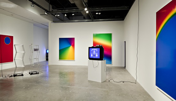 On view through May 9th at the Museum of Contemporary Art North Miami is a retrospective of work made by Brooklyn-based artist, Cory Arcangel, from 2002 to present. The solo exhibition, entitled The Sharper Image, examines the prolific artist’s diverse practice, featuring a virtual grab bag of media—video, print, sound, performance, sculpture, drawing and web-based work. An artist, computer programmer and web designer, Arcangel was first featured on DailyServing in 2007. He is best known for his explorations of consumer technology and digital culture, including cheeky modifications to old-school Nintendo games, such as in the 2002 piece I Shot Andy Warhol—an interpretation of the 1980s NES game Hogan’s Alley. Other works on view in The Sharper Image include: several prints of Photoshop Product Demonstration Gradients; Space Invader (2004), the modification of the old Atari Game Space Invaders; and a temporary re-design of the MOCANOMI website by changing the font to Comic Sans, which is live throughout the tenure of the exhibition.