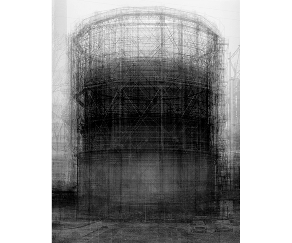 Walking up the curving ramp, the viewer encounters Appropriation and the Archive first. This is the perfect introduction to the show for both uninitiated and seasoned viewers, featuring imagery “borrowed” from print media, movies, and other images taken from the public domain. The textbook-classics are here: Andy Warhol, Sherry Levine, Richard Prince, Sarah Charlesworth. For the experienced, it’s like greeting old friends; for the newcomer, it’s a well-rounded primer. Though it may be familiar, Charlesworth’s Herald Tribune, November 1977 (1977) is particularly gratifying to see in person. Idris Khan’s Homage to Bernd Becher (2007) is a diminutive powerhouse of layered emotive lines that conjure up the industrial structures documented by photographers Bernd and Hilla Becher. The work in this section stands as a persuasive critique of the myth of artistic originality.