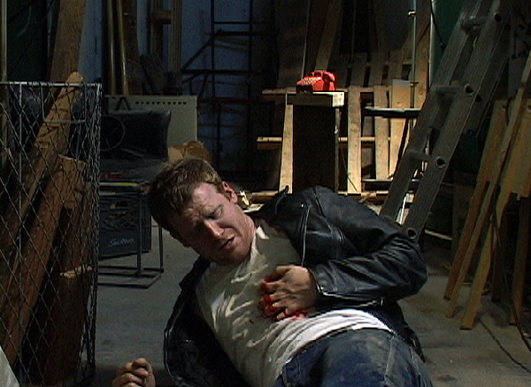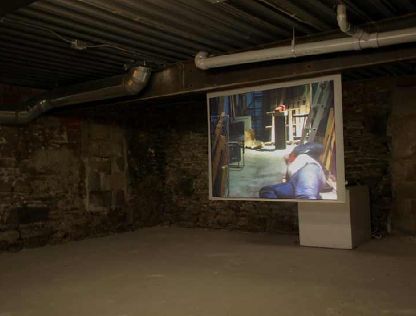 Lendrum’s I’ve Been Shot consists of a looping video in which a man grasps his bloody chest and crawls in pain toward a red phone to call help after having been shot. Just as he reaches his goal and goes to lift the phone, the video loops back to the beginning where he enters the frame, grasps his chest, exclaims that he’s been shot, and drags his body toward the phone. And it goes on and on. In his statement about the piece, the artist says, “This humorous re-articulation of the Sisyphean myth…satirizes machismo in both the art world and Hollywood films.” I’ve Been Shot does well to continue the dialog that Burden once started, and at the same time consider the extremism of Burden’s approach, but it can easily be argued that the younger artist’s work is just as reactionary and extreme (albeit in a different way) than that of his predecessor.