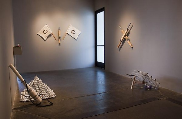 Artist Chad Person is presenting an exhibition titled, Surviving the End of Your World, currently on view at Mark Moore Gallery in Santa Monica’s Bergamot Station. For the exhibition, the artist is presenting works from his RECESS series (Resource.Exhaustion.Crisis.Evacuation.Safety.Shelter), which is essentially the remodeling of the artist’s home into conceptually sound environment that revolves entirely around survival.  Items in RECESS include a converted pool that now acts an operating bunker, a makeshift Double Barrel Shotgun, Modular Rain Barrels, Recycled Solar Oven, Golf Ball Cannon, and Signal Flags among several other objects. Within the context of the gallery these items become art objects loaded with cultural meaning.