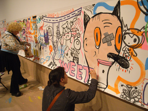 The apprentices also host events. In 2009, we’re going to have our seventh annual teen night. It’s an amazing opportunity for the apprentices to take the lead and create events for their peers. Usually there’s a student art exhibition that they curate, they bring out live entertainment, along with other activities. It’s like this big art party for teens; we don’t turn away the adults but it’s definitely designed for teens–creating a real ownership for them over the event. Last year, related to the Takashi Murakami exhibition, we collaborated with TOKYOPOP [publishers and distributors of Manga] to hone in on the Japanese pop culture connection–we had a photo booth, young performers, etc. The event was called Eye Candy.