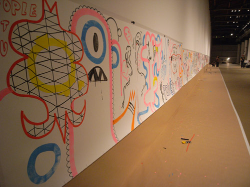 Denise Gray: Pervasive Persuasion I did earlier in the year in conjunction with the Takashi Murakami exhibit. It was a great opportunity to talk about the connection between art and commerce; and having Murakami there for the event was great. What I wanted to do was focus on L.A. for the event, because it’s such a rich environment for creative expression. We began by putting together a panel. From there we decided to do a collaborative mural that people worked on for an hour. Gary Baseman painted alongside Buto dancers. What made this event one of the highlights of my careers was the community, everyone there was from such a broad cross section.