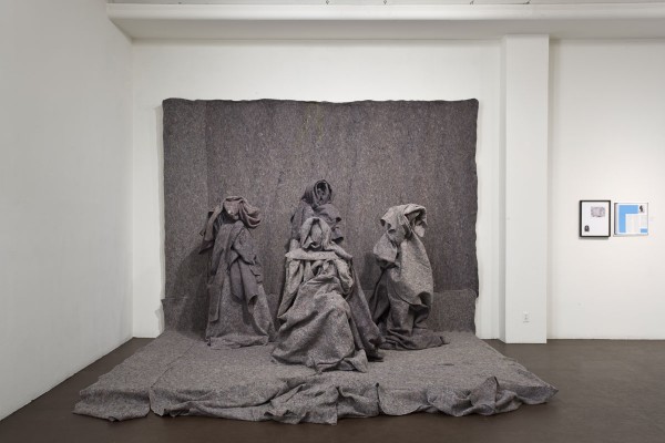 This particular print feels like a distilled version of Bress’s more unruly installation and video work, and the crinkles in the brownish and purple paper that cover the face particularly resonate with the surfaces of Disaster Family, a limbless fantasia of felt figures that Bress included in LACE’s 2008 exhibition, Against the Grain. There’s something violent about Bress’s refusal to give figures flesh or features–it obscures individuality while internalizing intimacy and resisting the outside world.