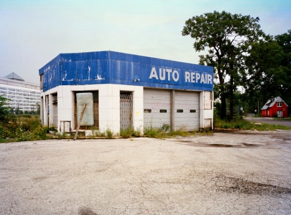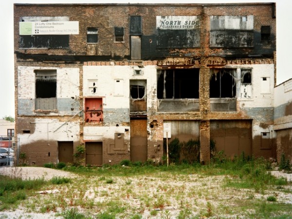 The notion of vacancy in Jarrett’s work is perhaps in part what drives the soporific quality of the installations which are ultimately presented as photographs. Jarrett seeks out ghostly locales and uses the emptiness to his advantage—piling white buckets past a boarded building and pushing a used mattress unapologetically against the window of an abandoned repair shop—situations that would lose their power in a world more populated.