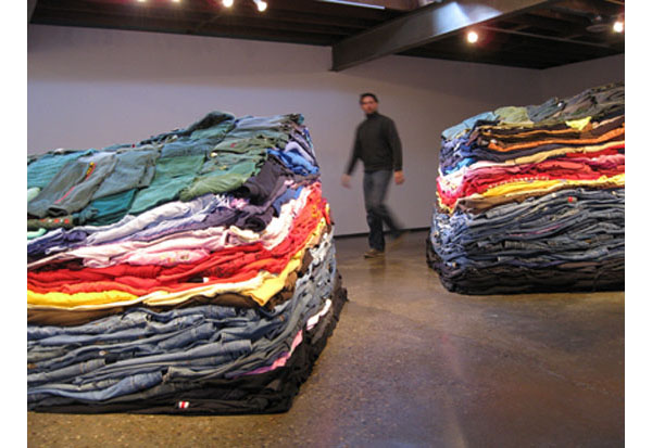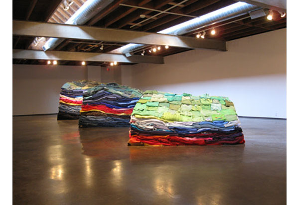 The artist’s work illustrates the reality of consumer culture’s effect on the landscape by actually reconstructing a cross section of the landscape made entirely of used clothes. Perhaps the most interesting component of this process is that the work is created using recycled materials which are taken from and reintroduce into the market place, without actually creating any new consumption.