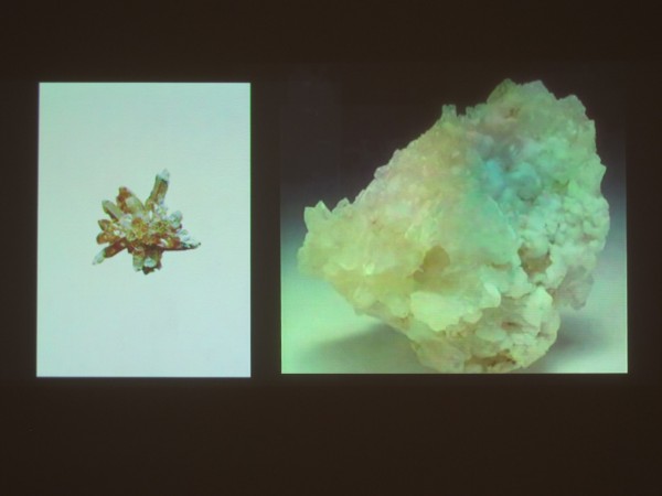 An explorer’s longing to approach the unknown, the use of a control group in scientific method, and the formalist use of relational color or tone are all based on comparisons. Following this, a slide show is included in the show projecting images that Van Beek has gathered from various sources including gold nuggets, baseball sized hail, ice crystals, diamonds, and meteors to create an almost rhizomatic network of associations that are at once visual, scientific and vaguely metaphysical.