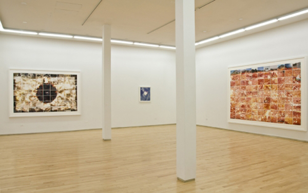 In Mann’s most recent works, found photographs of conflicted and historically complex places throughout the Middle East are subjected to a process of selection and erasure. By painting on portions of enlarged color photographs with a clear varnish and then bleaching away unprotected portions of the image, new and abstract meanings are sought from appropriated snapshots, travel photographs, and casual documentations. The photograph is physically and contextually altered; as a result, the work oscillates between image and object, photography and painting, real and imagined.