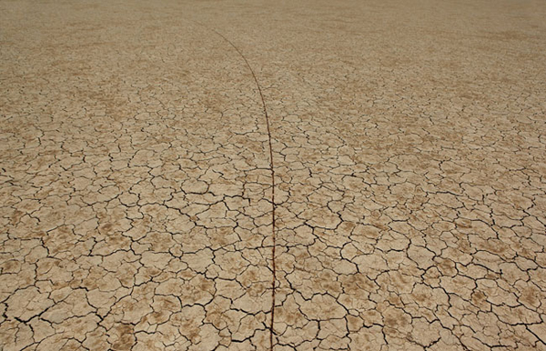 Amongst the numerous large scale video projections presented within the cavernous exhibition space was William Lamson’s A Line Describing the Sun. An exquisitely documented land art installation/performance whereby Lamson uses a mirror and Fresnel lens, mounted to a wheeled device, to harness the sun’s rays in order to melt the mud of a dry lake bed into glass-like arcing line. The video, having recently been on exhibit at Pierogi’s Boiler space with a 23-foot scale model of the line created, lacks nothing without it’s sculptural counterpart.
