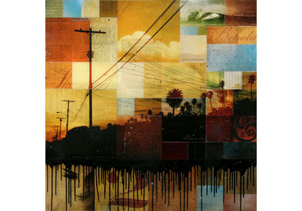 Artist Jay Kelly currently has a new series of works on view in the exhibition titled Rawness & Polish with Commissary Arts in Venice Beach, California. The works on view will include several medium and small-format collages. Some of the works are illuminated by light boxes, constructed of photographs, stencils, spray paint, and found imagery. The artist successfully fuses his personal interests of natural and urban-based elements, found in the land and cityscape of Southern California, with a highly decorative method of visual arrangement. The result reflects a slice of contemporary life synthesized into a graphically compartmentalized surface.