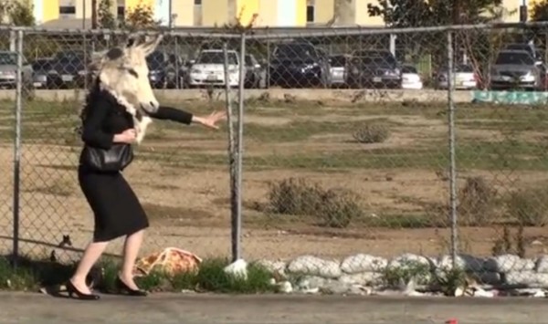 In Dorit Cypis’ 1987 photograph The Nervous System: Mother and Child, a pink, frilly, sinister image, a toddler holds her dress over her mother’s face in a way that connotes either precocious murder, or a forced pedophilia. In Angela Ellsworth’s Untitled, two girls with heavy braids, who could’ve come from Yearning for Zion Ranch, are about to gently kiss, putting the conservative, repressed wholesomeness of their appearance into intimate contact with the liberation tied up in girl-on-girl loving. There’s no shame in Ellsworth’s image, but there is in Elana Mann’s 2009 video Ass on the Street, where the artist wears an ass’s head and feels her way down a South L.A. street. Her body’s timidity and the simplicity of her black outfit makes the expression of perversity (she’s openly being an ass) seem wrong, like a Scarlett letter, and, as moving through the world with an ass head makes it difficult to see where you’re going but easy for everyone else to tell, Mann places herself at the mercy of others even though she can’t really engage them at all.