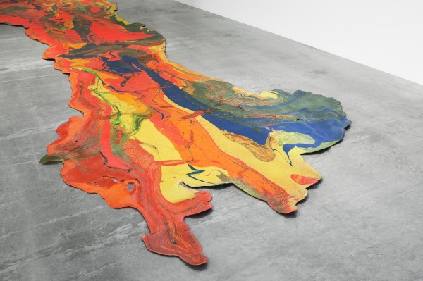 The Fallen Paintings (Benglis’ signature poured latex floor pieces) are by far the best in show. Slabs of poured paint yield to gravity as they diffuse Minimalism’s rigid structure with Colorfield’s floating orbs and Jackson Pollock’s subconscious process. These works call to mind a sophisticated sense of order, like Merce Cunningham’s low center of gravity choreography. However, the chicken wire, glitter, paint and plaster construction of the wall pieces, which was probably shocking in the ‘70s, just seems amateurish now. They don’t extend the properties of the material to anywhere near the same degree that the floor works do. They look good in reproduction, but in person they disappoint.