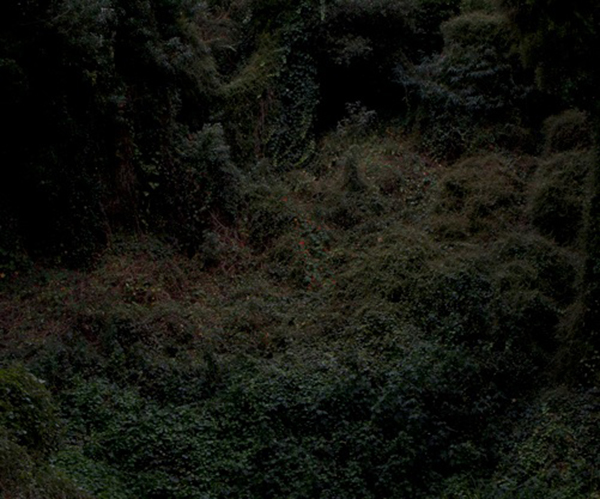 Dark Pictures delivers what its title promises: a series of artfully underexposed, too-closely-cropped wilderness shots. Seen live, the effect is similar to a daguerreotype, with each image so dark that you find yourself squinting to see better. As your eyes become used to the darkness, the lushness of the individual details stands out. In Wall of Plants (2010-2011), thousands of pieces of foliage compete for attention, a battle ultimately won by color alone: a single strand of muted-red ivy weaves its way through the rest of the plants.