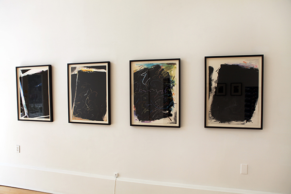 Treleaven’s new show at Silverman Gallery in San Francisco is an evolution of his genre-crossing method. It employs drawing, photography and sculpture, though delineating between them feels counterproductive, as all his mediums consciously overlap. Upon first glance, the work almost appears to have been made by several artists. On the rightmost wall hang multiple small and near-monotone 35mm images of objects photographed through aging second-hand mirrors, titled Portal Photographs, while the leftmost wall features large, abstract collages obscuring painted images, titled Cell Drawings, with a gestural effect that recalls Cy Twombly’s expressionistic mark-making. Separately, each set of works refuses narrative, but together, they engage in dialogue.