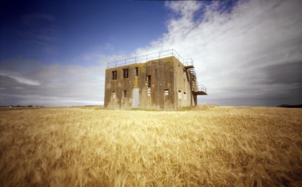 Harrington becomes a metaphorical base for Glover’s own physical and photographic exploration of the aesthetics of past wars, and a point to revisit the shifting zones of confrontation and alliances. During World War II, Harrington was the base for the delivery of supplies to resistance forces in enemy-occupied territories. France, Drop Zone marks a point in the south of France that received supplies from Harrington. With her first series of Harrington photographed in black and white, Glover has since chosen to shoot in colour using a pinhole camera without a viewfinder. With the subjection to long exposures and layering of light, the eventual photographs capture a field of depth and concentration of light that speak to the effects of the natural elements on these sites.