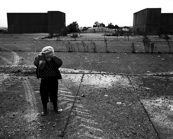 Since the early 1980s, Glover has travelled in search of abandoned military bases. Glover developed the Playgrounds of War series from photographs of Harrington, a former World War II airbase in England, which was later allocated to the United States Air Forces. Harrington resides in Glover’s personal history as a place where she had picnics as a child in the 1950s, and was then oblivious to its military associations. Jessica’s Playground, taken in the 1980s, revives this moment of innocence amidst a site constructed for acts of destruction, with Glover’s daughter photographed playing amidst the concrete structures left standing as memorials to its history.