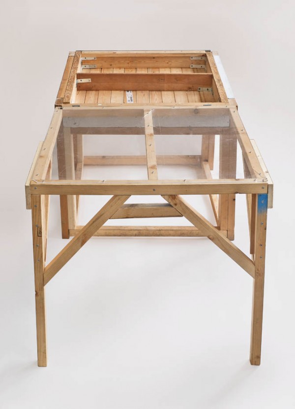 Carl Hendrickson and Jeremy Burleson both created sculptures that blur the line between practical application and surreal artistic liberty. Hendrickson’s wood sculptures resemble recognizable structures at first glance, yet further inspection reveals that their construction negates their utilitarian function. Burleson’s sculptures of medical equipment made from tape, plastic and paper, maintain an amazing amount of detail and accuracy, yet cannot be forgotten as non-functional art objects.