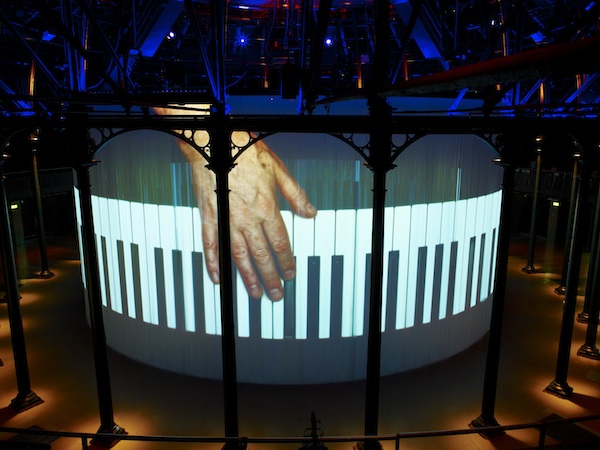 The golden boy of Venice, Christian Marclay, has joined forced with experimental jazz pianist and often-collaborative partner, Steve Beresford to create Pianorama – an surround sound piano which Beresford appears to play from all angles. Marclay’s interest in music and splicing of video fragments are extended here into an endless instrument, surrealistically played by a multitude of giant hands reaching around you.