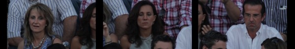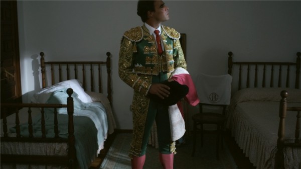 In Ori Gersht’s Offering, the structure is exploited not only for its formal qualities, but is used as an integral part of the thematic approach of the work. A man begins to dress in a room, but it only slowly becomes clear what he is preparing for. His audience emerges on the opposite site, waiting in anticipation. We have entered a bullring, exposed to the intimate, individualistic side, removed from the bloodshed and controversy – instead looking at the delicate preparations and directly into the eyes of the supporters who solemnly wait.