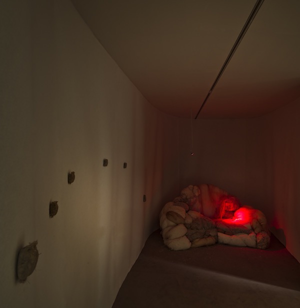 The Famous One from Lucas # I continues Tjoe’s exploration of materiality as metaphor for the esoteric nature of the human condition. Textiles are primarily transformed into both familiar and non-familiar objects – a worn-out sofa and a teddy bear being the more recognisable ones –, their surface textures and form adding, according to Tjoe, an interesting dimension of sensation especially for the object art she creates. But like wanderers in a labyrinthine environment, it is hard to tell where The Famous One from Lucas # I starts and ends, despite Tjoe’s assertion we are walking through memory markers (displayed as physically undefined objects along cocooned walls) that express the journey of one’s life. We know the show’s conceptual starting points: the sheer greyness of the human psyche dictates that hope and despair are faces of the same coin, defined by their relation to one another. Yet the lack of linearity in its atmospheric spaces, soft curved walls and winding pathways seems to scope out a more cosmic intersection of nature and nurture; it introduces into the visitor experience a hint of the tenuous boundaries separating the cerebral and the emotional, the past and the present, the spiritual and the carnal.
