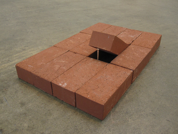 Whitney Lynn, Silver Equivalent (2011) Clay bricks, silver-plated steel nail, 7 x 14.5 x 23 in.