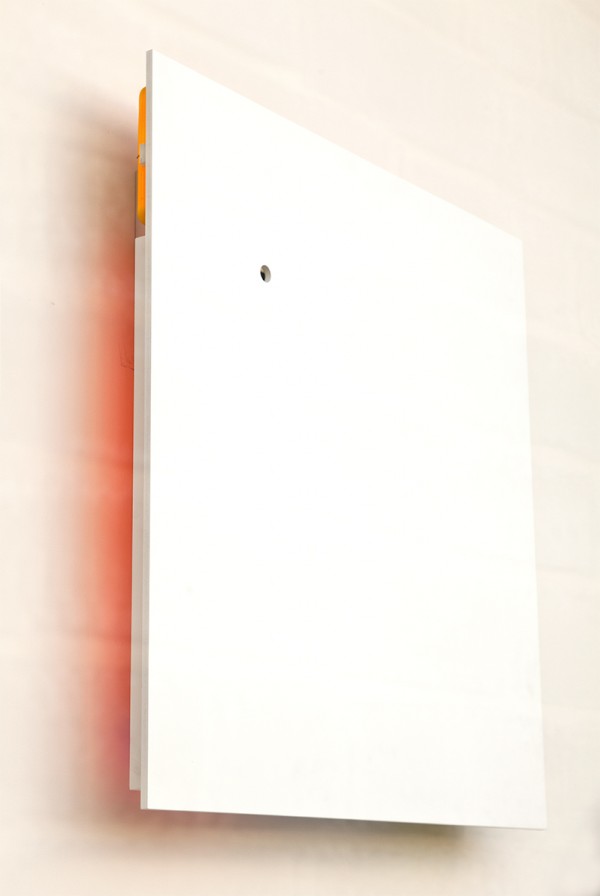 The first time I see them, in the late morning, lavender and peach are barely breathing behind the first white panel; lavender and ultramarine discreetly bleed out behind the next panel, which is black with gold-leaf; peach fuzzes around a second white panel; and I can’t even see that there’s light-life behind the last red-orange panel. But in the evening, when I return, the sherbets have hardened, and by nighttime these are not the same walls. At least, they don’t feel the same.
