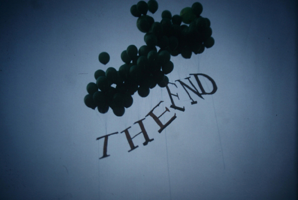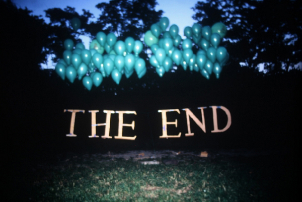 Lukasz Jastrubczak: Most of my inspiration is connected directly to a specific idea in the movies. I try to take an idea from cinema and use it in a very minimal way, as simply as possible. I use materials like cardboard or fabric, because the works are props, as though I am taking the scenography from movies and putting it into reality. For example, The End was made with cardboard and helium balloons. I wanted to put the fictional sign into reality as simply as possible and recreate the final motion of the words on a movie screen. And Paramount Mountain [installed as part of the exhibition Mirage] is just the beginning of a movie, the logo. At least, that’s the inspiration but then I also connect it with the tradition of abstract geometry, the shape of a triangle and the color blue. It creates the idea of a distant mountain in aerial perspective.