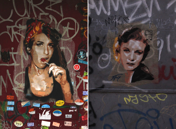 Andrea Michaelsson’s Amy Winehouse appeared on the BTOY Flickr photostream on August 11, 2011 for the first time, over a month before the singer’s death. Known for her depictions of women, her paintings of Winehouse show her cultural intuition. Winehouse’s death makes her stenciled image ghost-like. Another woman I find in her stencil style is actress Ginger Rogers.