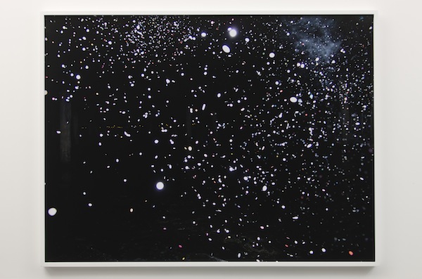 Paterson’s latest exhibition at Haunch of Venison in London serves as a mini-retrospective of the artist’s projects to date, and the element of performance permeates all of her works – whether it be on an astronomical or human scale. In 100 Billion Suns, a project first developed and executed at the Venice Biennale, a confetti canon is discharged daily within the gallery space. The canon contains 3261 pieces of paper, each one carefully colour-matched to a corresponding gamma ray burst, the brightest of all galactic explosions, burning at the luminosity of 100 billion suns. Here, the artist turns this rarely occurring, and even more rarely seen, event into a daily ritual, peppered with celebratory and nostalgic allusions.