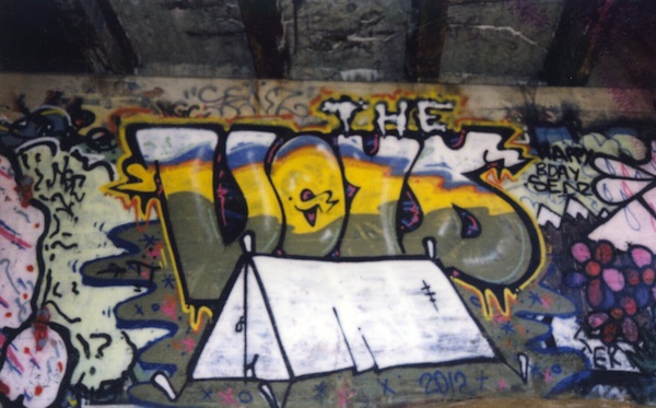CD: Most graffiti has a secret source but you are connecting your identity to the art—or maybe you’ve built an identity for creating art. Using the name “void” has a certain meaning, but maybe it’s just an embellished lack of meaning. The tent symbol seems meaningful (a tentative space to fill, an efficient traveler) but also reminds me of the shape of a capital A or in it’s extended version AVOID.