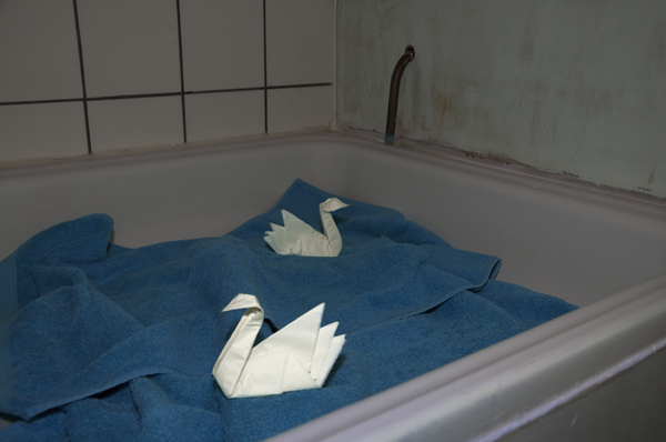 One evening a baby possom appeared in the bathroom. There was a heavy rain happening and the kid looked drenched. He moved quickly, up the tank, across the vanity, jumped down, and skidded on the tile, his little toe nails clicking. His tiny ears were translucent and his fingers and tail pure pink. I was scared of the possum whereas Rebecca was entertained and the one to force it back through that hole it came out of, below the vanity where the catch pipe comes through. I remembered a run-in that I’d had with a big momma on my back porch one day, seething, growling, etc. We filled the hole and glued some wood over it. We could still hear it chewing. It must have come from outside, maybe from a nest below the floorboards.