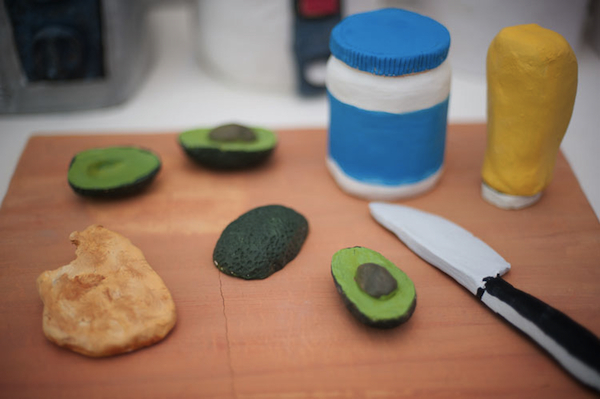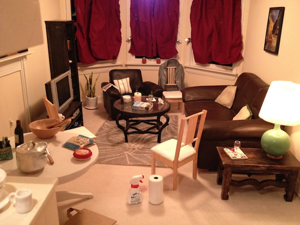 The photo That Melancholy continues along a similar train of thought–except the space is fiction. I created a scale model of an apartment, something of a mashup of apartments I’ve lived in, and my memories of friends’ houses. It tells the story of three months of the life of a young woman moving into an apartment: she moves in, buys furniture, decorates, cooks dinner, does exercise videos, has a party, a romantic encounter. And this is all told through still photos of her objects. That Melancholy (the aftermath of a party) comes near the end of the series. It stems from a comment someone said to me recently that the moment right after everyone leaves a party is one of the saddest moments imaginable. That’s kind of an exaggeration obviously, but part of what this story is about is the tragedies and triumphs of everyday life–until something earth shattering happens to you to really put things into perspective, we live our lives totally zoomed in, and the little peaks and valleys are all we see.