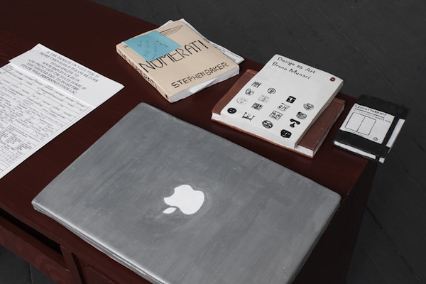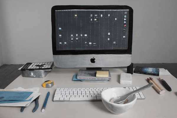 In the piece Our Desktops: A Love Story, I remade three desks, mine, my girlfriend’s, and our coffee table, and all the objects on them; books (loved books and those we aspire to love), notes, bills, coffee cups, computers. The importance to remaking them was to prompt the viewer to evaluate each object as a potential carrier of significance. Every object is rather intentionally clumsy, I don’t want to be Richard Shaw, it’s not about fooling the viewer, it’s about telling a story, or maybe more accurately: asking the viewer to tell a story.