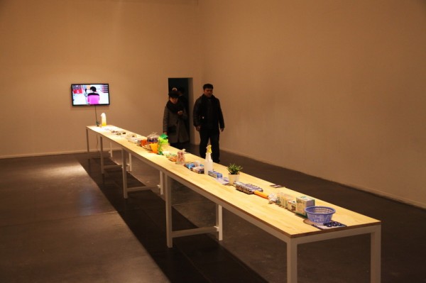 Cell Art group had reopened their shop – CELL and in all apparent seriousness, displayed their shop sign and cashier desk. Works displayed including documentations about their performance in Chongqing, installations, videos and live performances. On the day of the opening, together with the audience and the securities of UCCA, Cell Art Group toasted in front of the rotten meat and fish displayed on the dinning table where photos were taken.