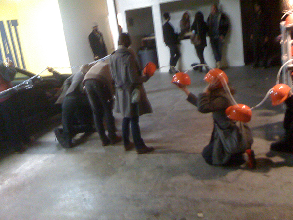 Sebastian Cwilich (left) and Carter Cleveland (right) at Haunch of Venison, 2011. Photo: Eric Ogden.