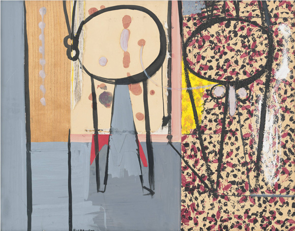 Robert Motherwell. Pancho Villa, Dead and Alive, 1943; cut-and-pasted printed and painted papers, wood veneer, gouache, oil, and ink on board; 28 1/4 x 35 7/8 in.