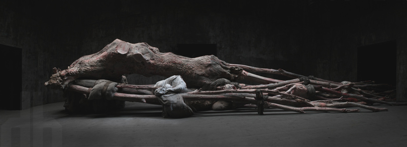 Berlinde De Bruyckere. Kreupelhout–Cripplewood, 2012–13; wax, epoxy, iron, textile, rope, paint, gypsum, roofing; 368 7/8 x 394 1/2 x 663 3/4 in. Courtesy of the Artist and S.M.A.K., the Museum of Contemporary Art, Ghent. Photo: Mirjam Pevriendt