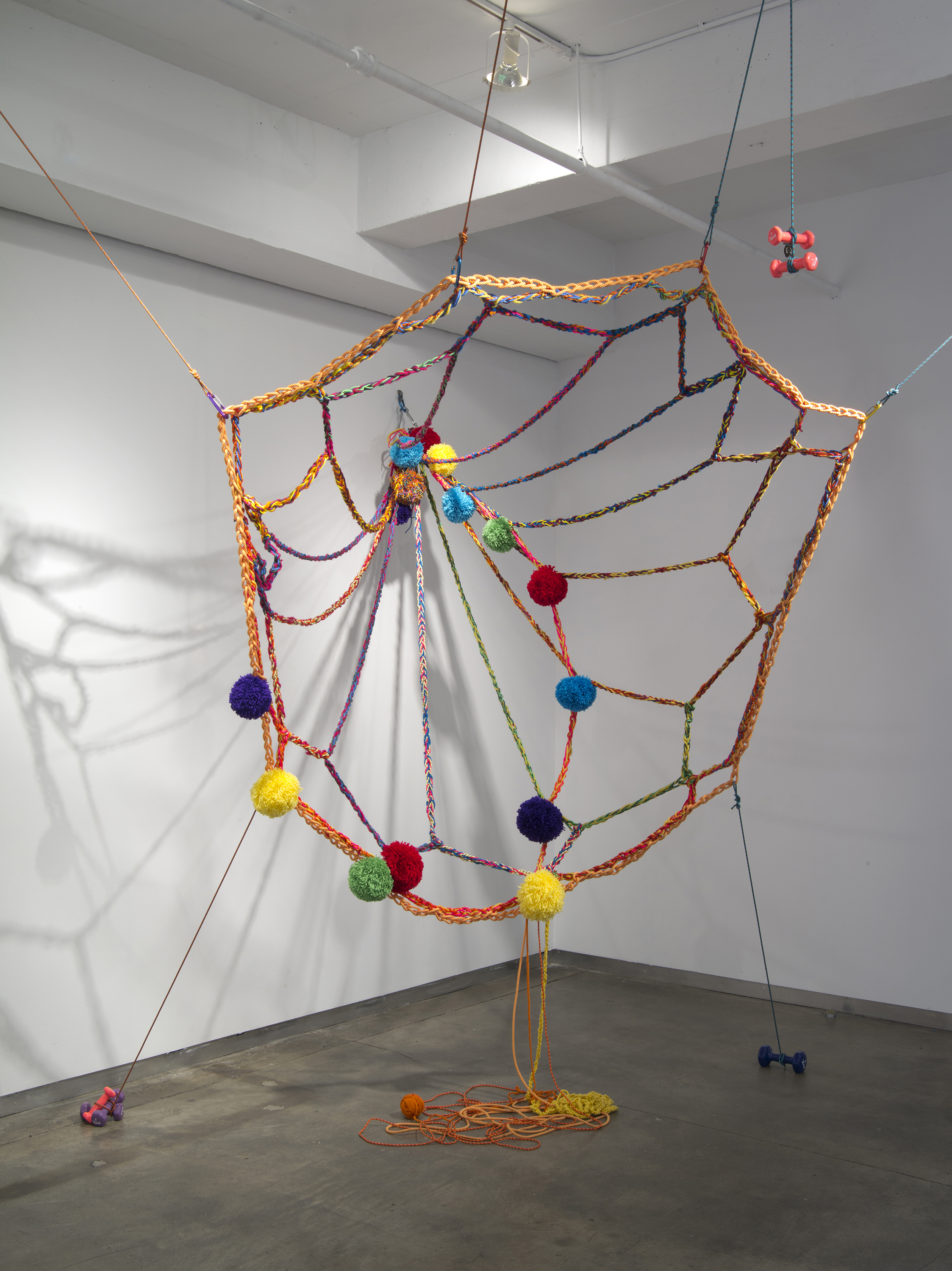 Rock-climbing ropes, wool and acrylic yarns, carabiners, coeur anchors, barbie weights. Dimensions variable. Courtesy bitforms gallery nyc, Photo: John Berens