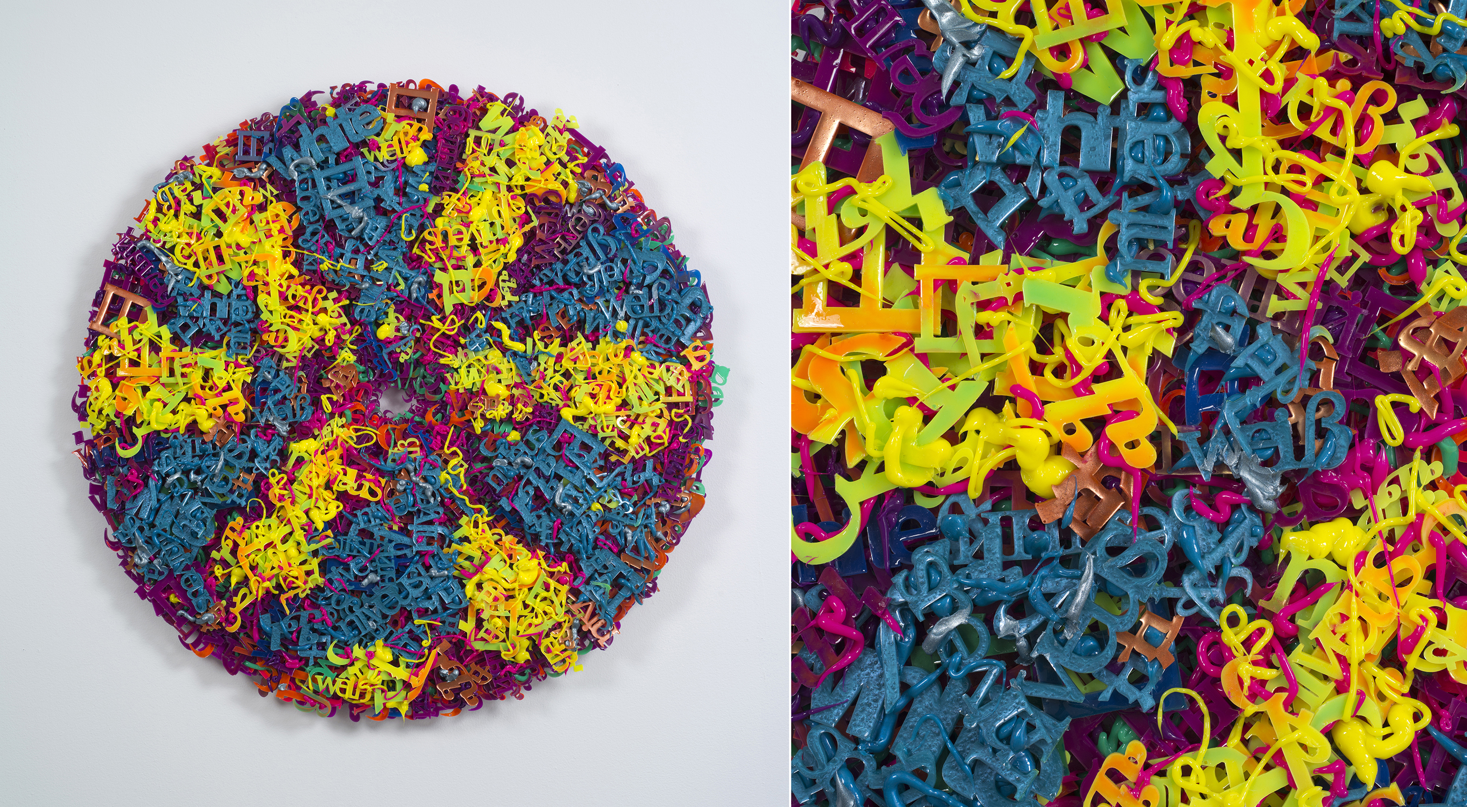 Anuradha Vikram: How does this show’s body of work and concept evolve from your previous works that combine multiple languages toward a single concept or meaning? Do they relate to your history of working with technology, language, and systems?
