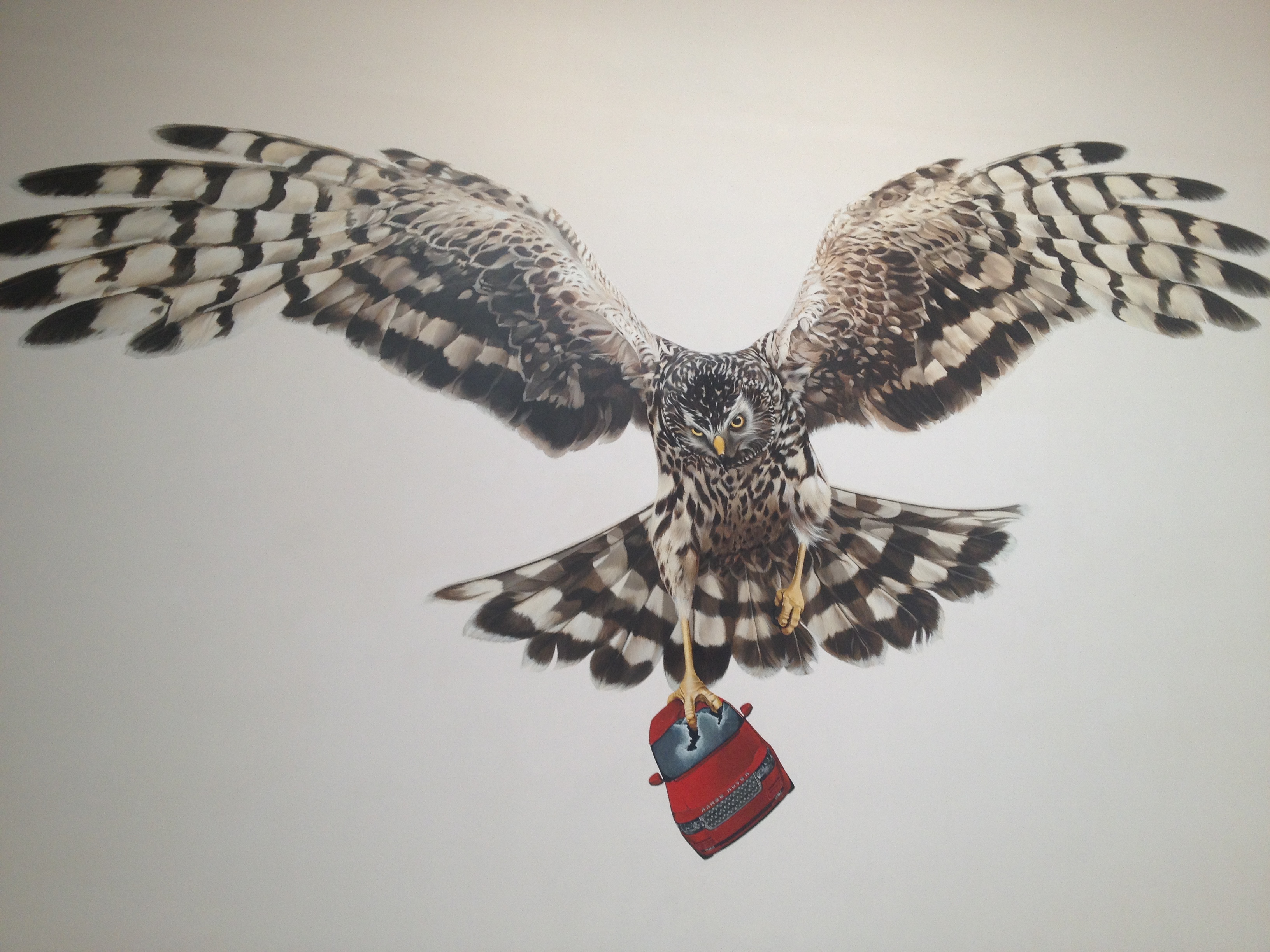 Jeremy Deller at the British Pavilion brings a political approach to history in a series of installations that deal with working-class revolt against the symbols of affluence. A series of large wall murals add polemical humor to the copious photographs, documents, and drawings that Deller has collected—each space centered on a different act of protest. Upon entering, the viewer first encounters a mural of a massive owl in flight with a red Range Rover dangling from one of its claws. On the opposite wall, the banking town of St. Helier in Jersey is depicted in flames. These are mythological scenes in which Deller imagines the twin oppressed collectives of nature and the working class taking their revenge on those who have exploited them for so long.
