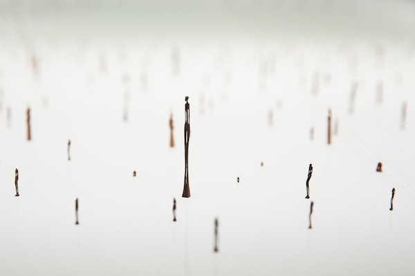 Works that explore the quotidian social injustice that millions in the region suffer are plentiful and cast a harsh light on the costs we bear as humanity slowly destroys itself. Nikki Luna’s Tiempos Muertos (2013) is an installation of a thousand diamonds cast from sugar that details the exploitation of cheap labor, while Adrian Ho’s Fruits of Life (2013) registers its mournful concern for the Bornean forests that have fallen prey to palm-oil corporations. In an installation comprising fragments of body parts made of wood, clay, and stone scattered in foetal positions, Kiri Dalena’s Monument for a Present Future (2013) recalls the ash-covered bodies in the wake of Mt. Vesuvius’s eruption in A.D. 79, suggesting that the loss of lives will always count as the greatest tragedy in the aftermath of catastrophes or atrocities.
