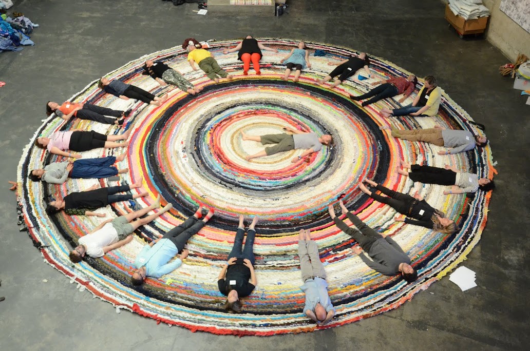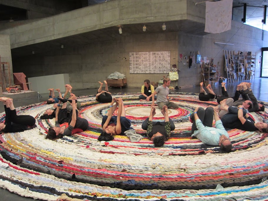 Christian Nagler. Yoga for Adjuncts, 2014. Workshop at Valuing Labor in the Arts: A Practicum. Photo by Joanna Fuller. Courtesy of Arts Research Center, UC Berkeley.