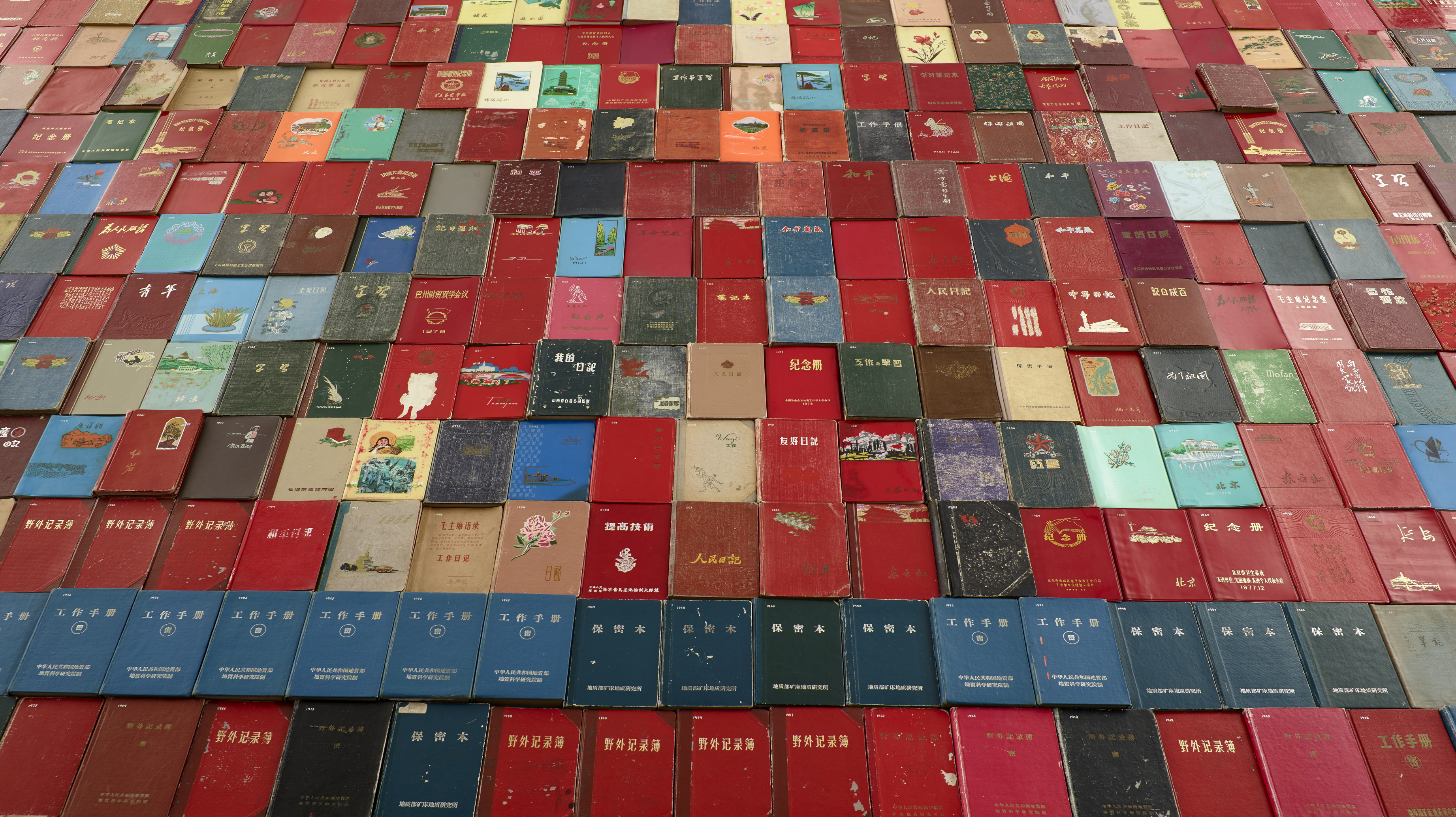 Curator Claire Roberts explains the work’s significance: “There has been a trend for a while for Chinese artists to start looking at their own history, and Yang Zhichao’s work fits into that trend. It’s just so evocative of those amazing decades of the transformation of China. Even just by looking at the patina on the covers of the diaries you can see history unfolding before your eyes… These 3,000 diaries each represent a fragment of the lives of actual people. We can appreciate it as a contemporary artwork, but also as a work that opens up all sorts of insights into how individual lives have intersected with the big historical movements… Yang Zhichao is a performance artist, and this work is a performance installation.”[3]