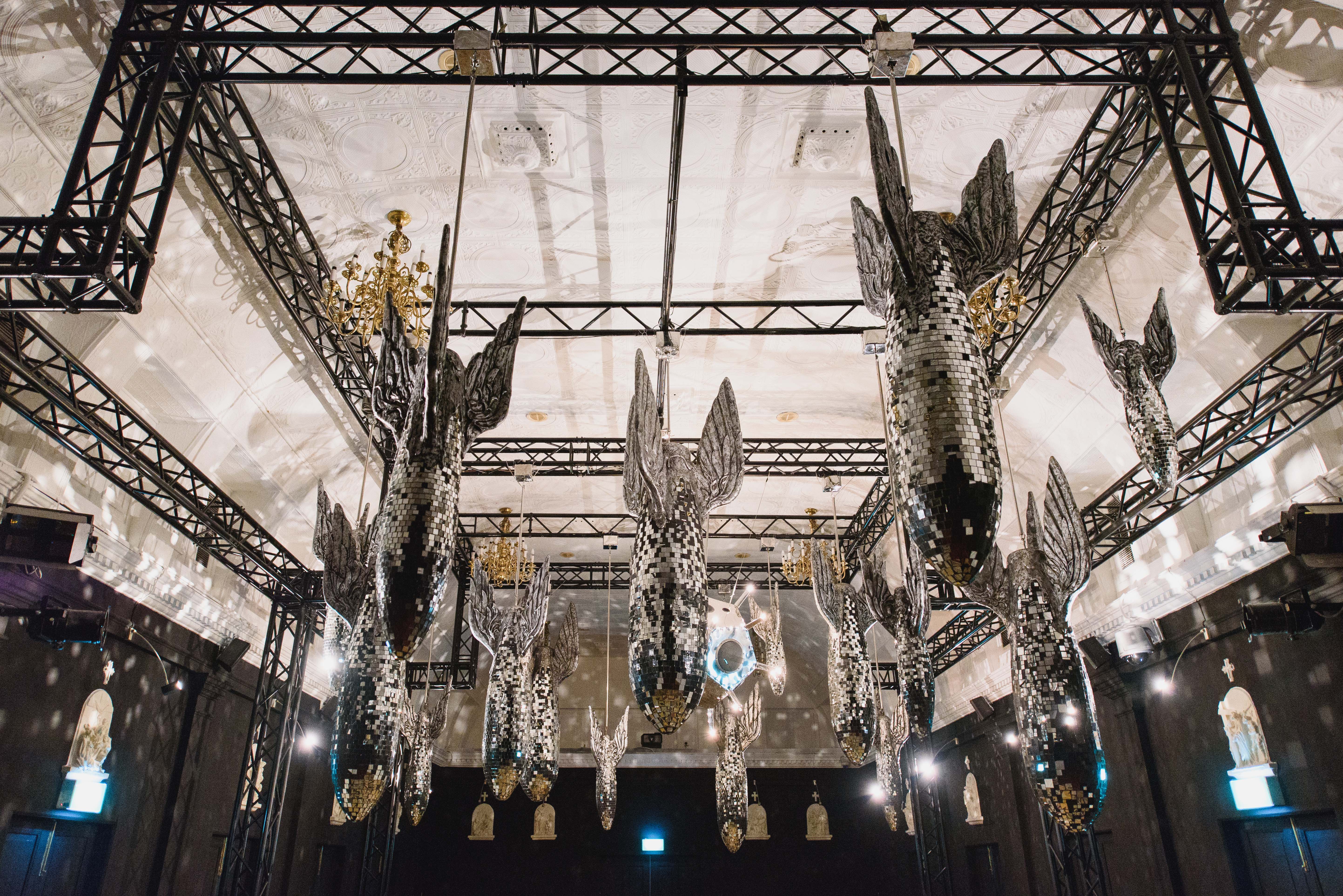 Kawayan De Guia. Bomba, 2011; installation comprising 18 mirror bombs, sputnik sound sculpture; dimensions variable. Collection of Singapore Art Museum. Courtesy of Singapore Art Museum
