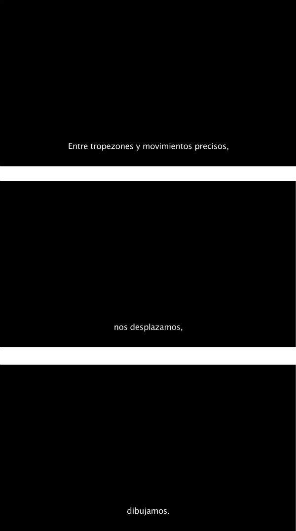 The second featured video, Ensayo Sobre Circunferencia 4 [Essay on Circumference 4] (2014), is silent. The camera remains still. On the screen, a magnified thread appears, and a pair of hands try to tie multiple knots with it. While doing so, different shapes of circles and moving lines are created. These fleeting thread sculptures highlight the small, poetic gestures of our everyday life, to which Libertad calls attention.As a whole, the exhibition suggests a quiet experience, in which the spectator’s gaze masters and embodies drawings and plain spaces. The soft allusions of the pieces open a form of recognition, and simultaneously build a feeling of alienation. Everything is so close, yet so far. It speaks about us and about nothing except the very own existence of objects.