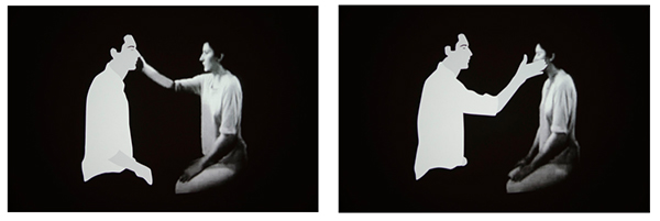 Kota Ezawa. Space Jam (Abramovic and Ulay), 2015 (film stills); single-channel black-and-white video, sound; 00:03 (looped). Courtesy of the Artist and Christopher Grimes Gallery.
