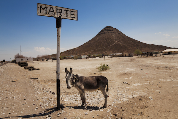 Ivan Puig and Andrés Padilla Domene. Donkey on Mars [Burro en Marte], 2013; digital pigment print; 37.25 x 52.75 in. Courtesy of the Artist and apexart, New York.