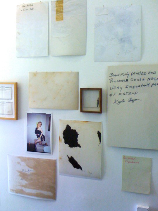 While Garnett’s installation closed the second week of October, another experiment in obsessive reenactment opened just down the street: Zoe Crosher’s The Unveiling of Michelle du Bois at Charlie James Gallery and the Dan Graham project space (a third component opens November 6 at Emma Gray Headquarters in Culver City, and even more du Bois is on view at the California Biennial). Crosher has inhabited an imaginary archive of an imaginary woman, who changed identities at will and tried her hand at being everything other than satisfied. Du Bois moonlighted as aspiring flight attendant, sex worker, housewife, socialite, etc. (or so I’m inferring), and so Crosher (or at least Crosher’s image), through du Bois, moonlights as all these things as well. As the story goes, du Bois photographed everything—all the changes in her guise have been documented. Photographing yourself performing yourself: du Bois resembles Berlin. Photographing yourself performing someone preoccupied with performing him/herself: Crosher resembles Garnett.